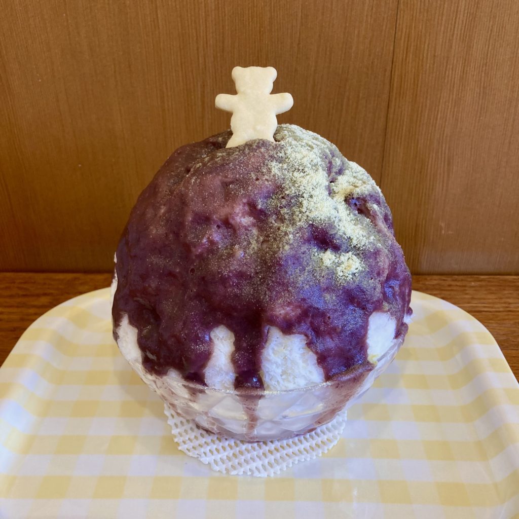 練乳ベースのシロクマシロップをたっぷりかけて、中の方にはぜんざいとホイップクリームを忍ばせて、上からこし餡シロップを垂らして、アクセントにきな粉をちょっとふりかけてみました。