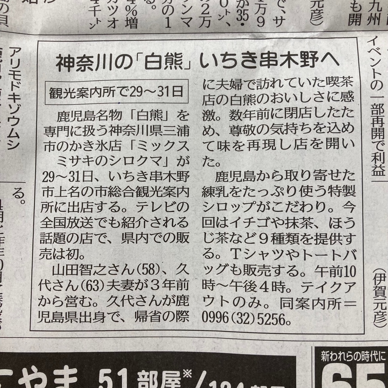 南日本新聞さんにイベント告知の記事を掲載してもらい、鹿児島市内からちょっと離れた場所で出店したにもかかわらず、たくさんのお客様に来場していただき、なんとかミサキのシロクマの鹿児島での初イベント出店を終えることが出来ました。
