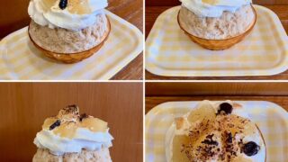 まずは器に自家製寒天を入れて、自家製の黒蜜をたっぷりとかけて、自家製のぜんざいをのっけたら、上にはシロクマかき氷をば。